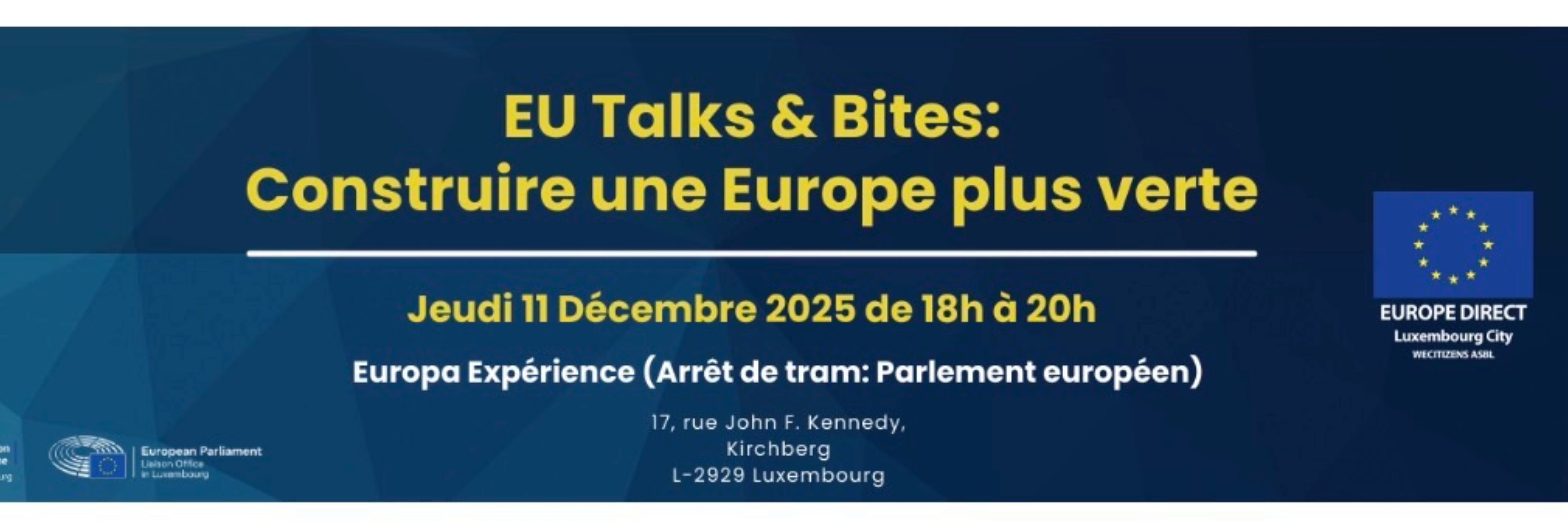 After the panel and Q&A, the conversation continues with an informal networking moment until 20:00. Details and the full programme in French: https://communautefrancaisluxembourg.com/2025/12/02/invitation-eu-talksbites-construire-une-europe-plus-verte-11-12-2025-europa-experience/