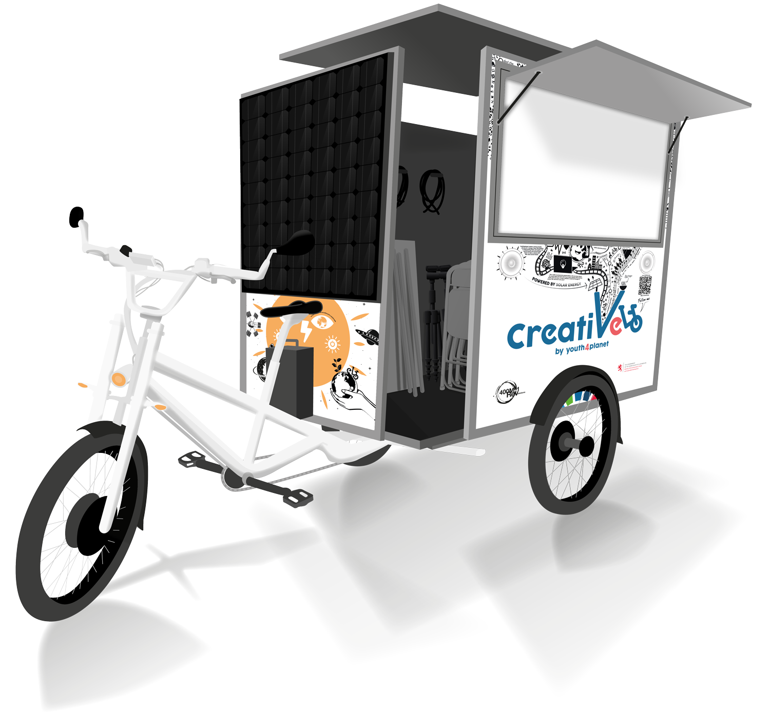 Youth4Planet's CreatiVelos offer a unique opportunity to bring education out of the classroom and into the streets. The cargo bike's innovative design and solar-powered eco-friendliness make it the perfect tool for fun, interactive workshops and events that promote SDG related topics.