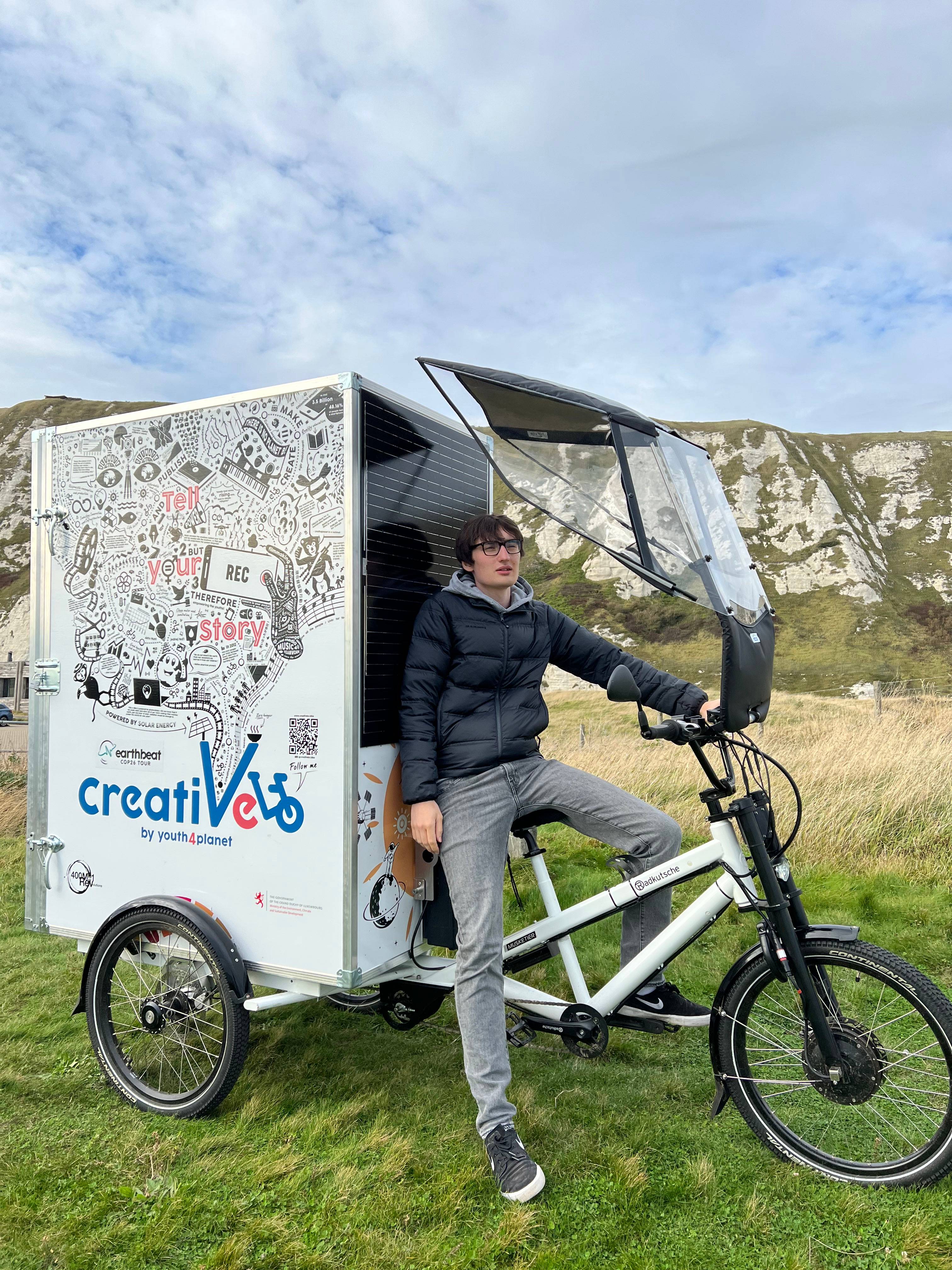 While the idea for the CreatiVelo was born in Hamburg inspired by a cargo bike from a backery, the first 3 CreatiVelos were born in Luxembourg in 2021. They are a platform to show films and stories by young people all around the world: Stories of change, always connected to the 17 Goals for sustainability. These films are made and inspired in youth4planet workshops or in the earthbeat challenge – enabling everyone to tell their story in an engaging and interesting way.