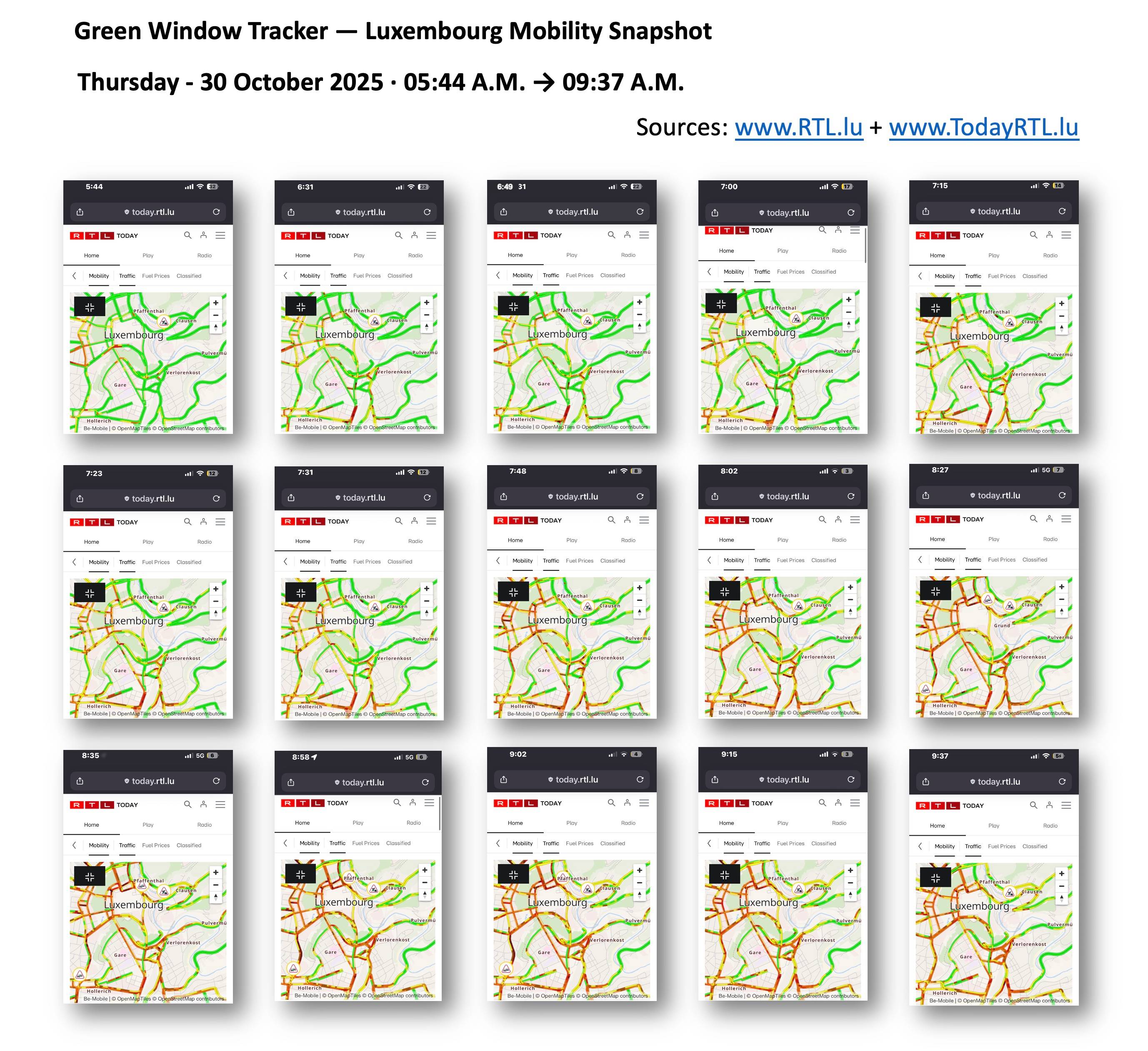 Only residual bottlenecks remain north and southwest of Luxembourg City — industrial corridors and regional commuting routes.