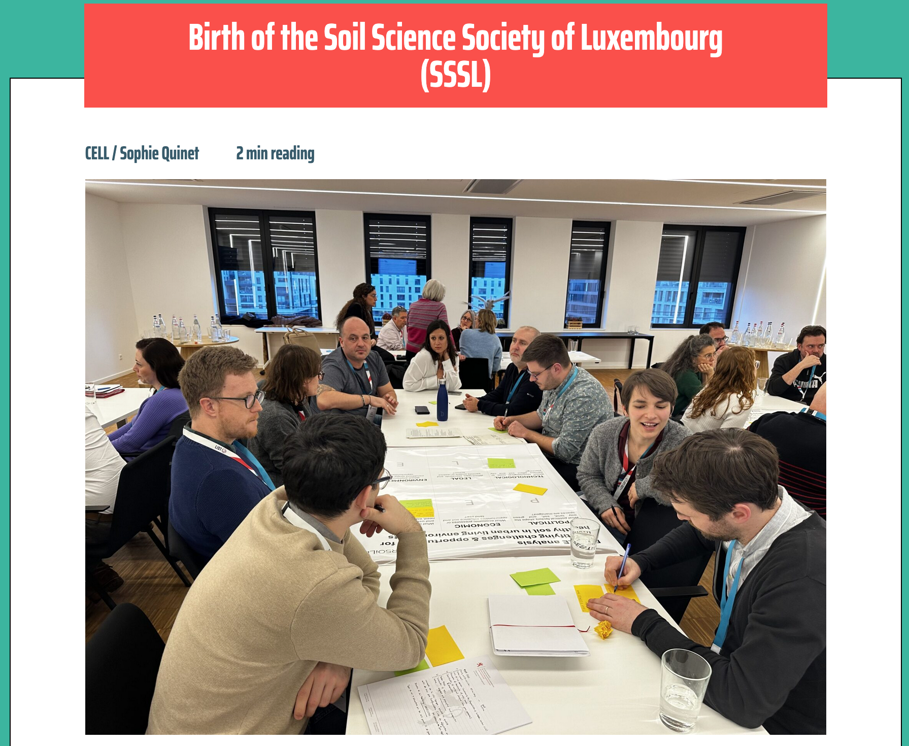 - Birth of the Soil Science Society of Luxembourg (SSSL): https://www.cell.lu/en/blog/naissance-de-la-soil-science-society-of-luxembourg-sssl/