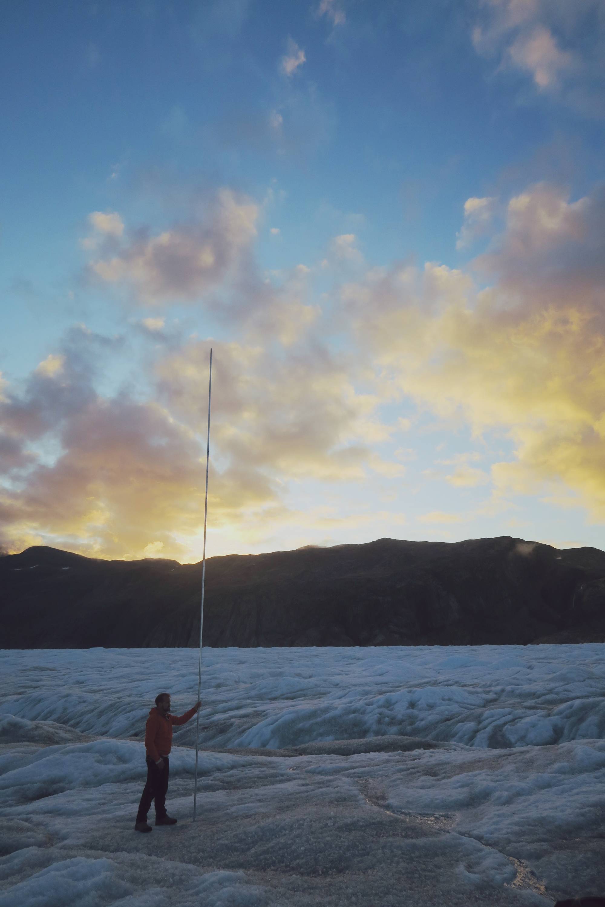 After a few shots, we were reunited with the crew and the youths set off to get some footages of our own. Prof. Jason Box brought a 6-8 m pole, which can be dismantled into several ones. He was trying to show us how much ice has melted in a one year period. It dawned on us on how tall the pole was and that we could be 8 m higher on the surface just a year ago. With the current global warming rate, the pole could double in height by mid century and THAT will cause a tremendous effect on the whole global climate.