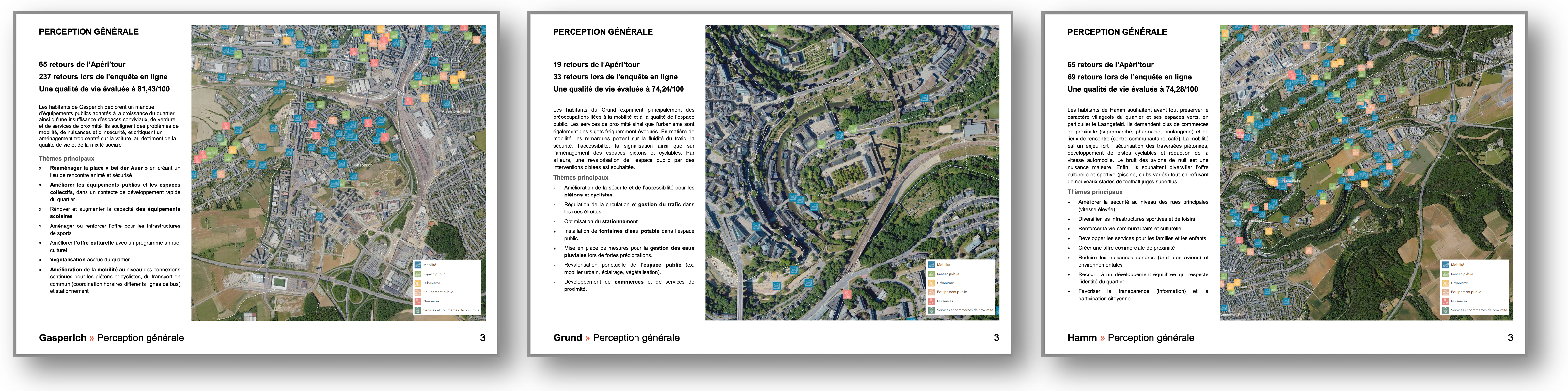 - Gasperich – Mercredi, 11 juin 2025 – 18h – Hall omnisports, 4, rue Gioacchino Rossini, L-2451 Luxembourg – PDF Evaluation quantitative par quartier 🇫🇷 français https://www.vdl.lu/sites/default/files/media/ni/document/GASPERICH%20-%20Rapport.pdf