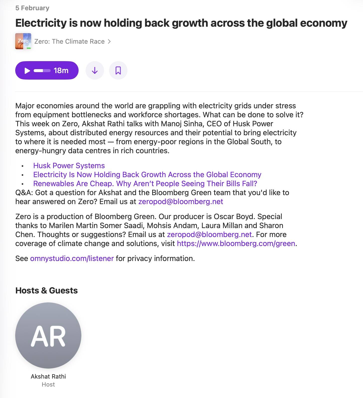 - Bloomberg Podcast: Electricity is now holding back growth across the global economy: