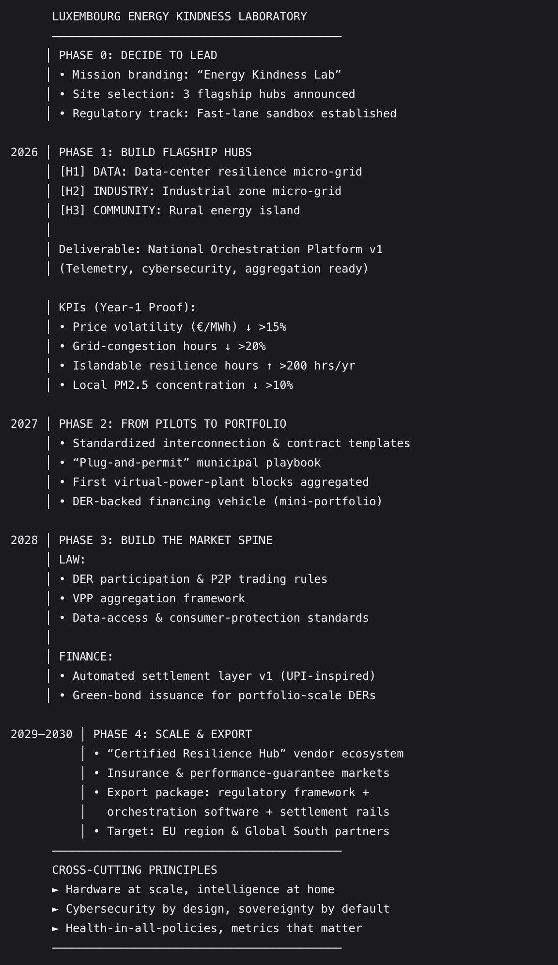 Now imagine applying this logic deliberately: Luxembourg launching annual Micro-Grid Marathons . . . not a one-off pilot, but sequenced national efforts. Data-center resilience hubs that remove pressure from the main grid. Industrial micro-grids that lock in predictable energy costs for electrifying and decarbonizing production. Rural Energy Islands that cut household bills while improving air quality and community sovereignty. All orchestrated by the national grid operator that evolves from asset owner to intelligence provider.